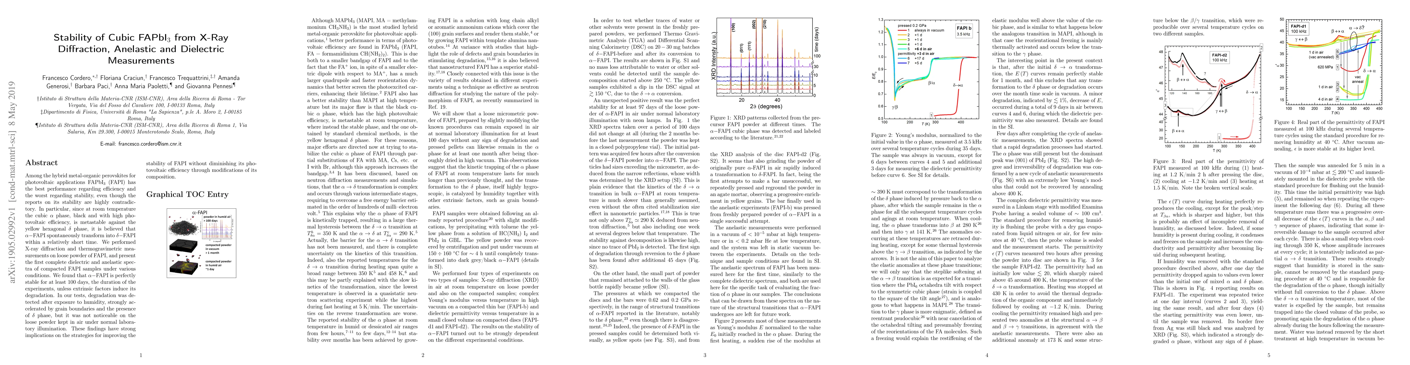 Among the hybrid metal-organic perovskites for photovoltaic applications FAPbI_3 (FAPI) has the best performance regarding efficiency and the worst regarding stability, even though the reports on its stability are highly contradictory. In particular, since at room temperature the cubic alpha phase, black and with high photovoltaic efficiency, is metastable against the yellow hexagonal delta phase, it is believed that alpha-FAPI spontaneously transform into delta-FAPI within a relatively short time. We performed X-ray diffraction and thermogravimetric measurements on loose powder of FAPI, and present the first complete dielectric and anelastic spectra of compacted FAPI samples under various conditions. We found that alpha-FAPI is perfectly stable for at least 100 days, the duration of the experiments, unless extrinsic factors induce its degradation. In our tests, degradation was detected after exposure to humidity, strongly accelerated by grain boundaries and the presence of delta phase, but it was not noticeable on the loose powder kept in air under normal laboratory illumination. These findings have strong implications on the strategies for improving the stability of FAPI without diminishing its photovoltaic efficiency through modifications of its composition.