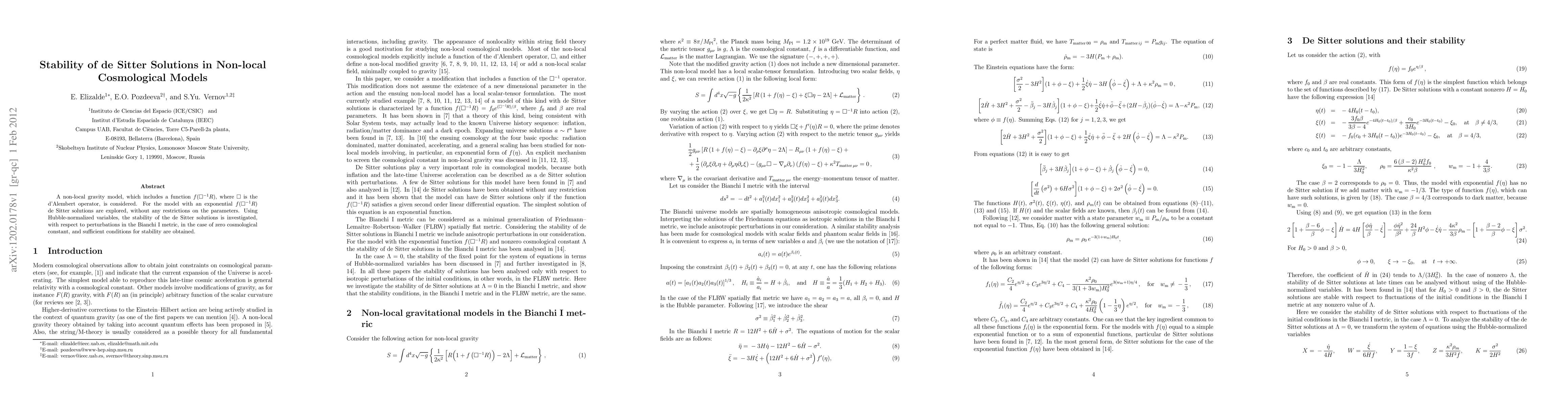 A non-local gravity model, which includes a function $f(\Box^{-1} R)$, where $\Box$ is the d'Alembert operator, is considered. For the model with an exponential $f(\Box^{-1} R)$ de Sitter solutions are explored, without any restrictions on the parameters. Using Hubble-normalized variables, the stability of the de Sitter solutions is investigated, with respect to perturbations in the Bianchi I metric, in the case of zero cosmological constant, and sufficient conditions for stability are obtained.