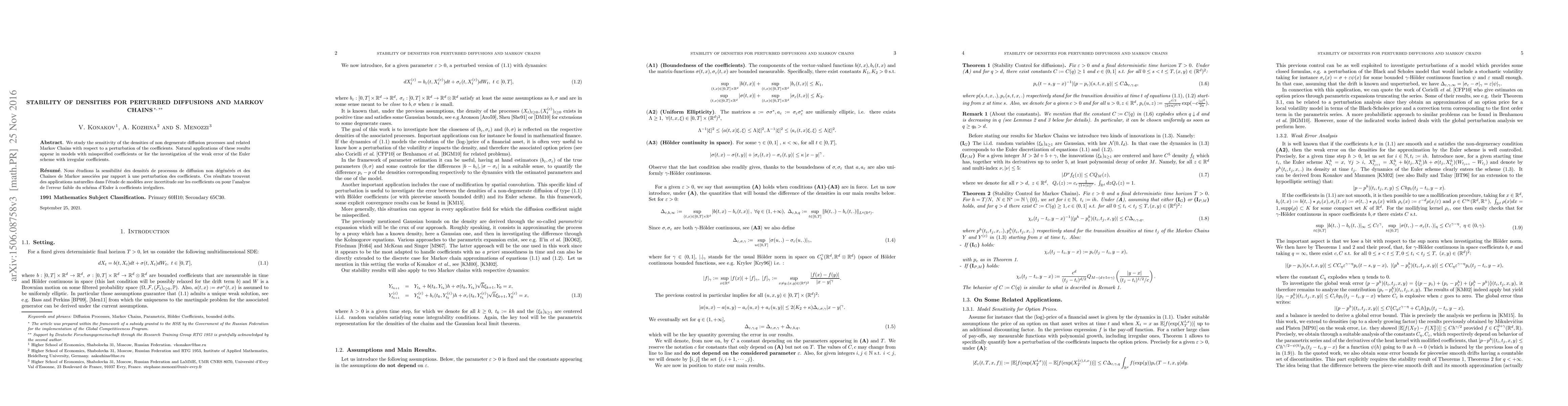This research investigates how sensitive diffusion processes and their Markov Chain approximations are to changes in their coefficients. It explores stability of densities under perturbations, offering insights into the reliability of these models in real-world applications.