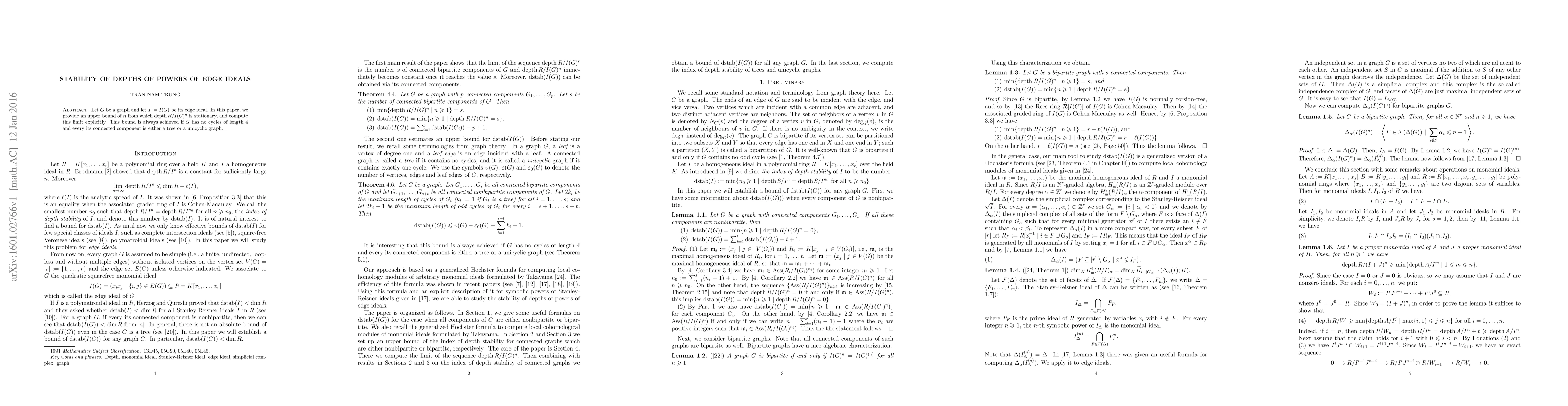 Let $G$ be a graph and let $I := I (G)$ be its edge ideal. In this paper, we provide an upper bound of $n$ from which $\depth R/ I(G)^n$ is stationary, and compute this limit explicitly. This bound is always achieved if $G$ has no cycles of length $4$ and every its connected component is either a tree or a unicyclic graph.