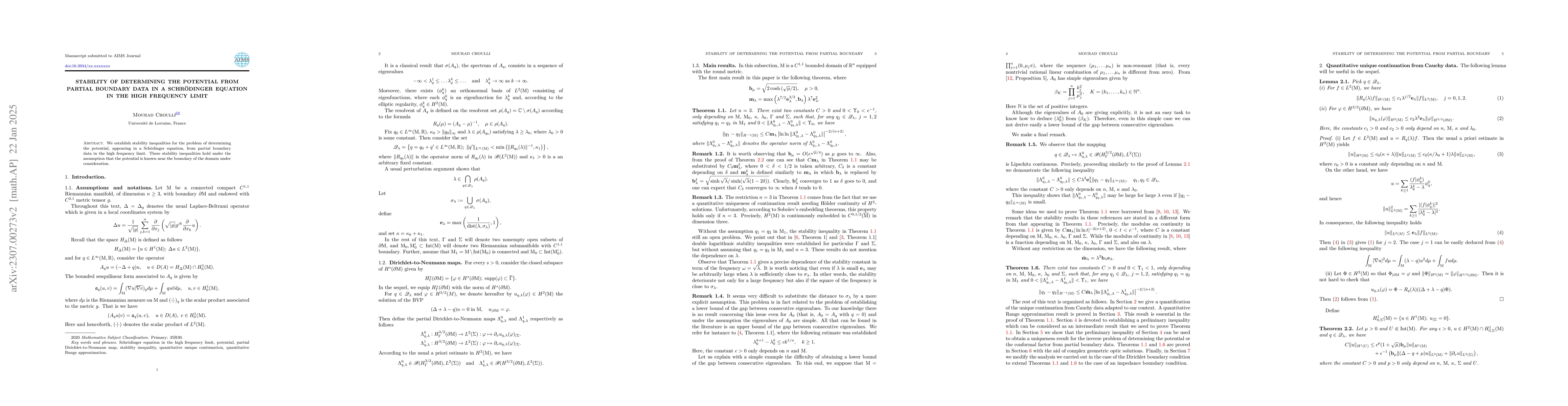 Summary: This paper establishes stability inequalities for determining a Schrödinger equation's potential from partial boundary data in the high frequency limit, assuming the potential is known near the domain's boundary. These inequalities ensure the stability of the potential determination process.