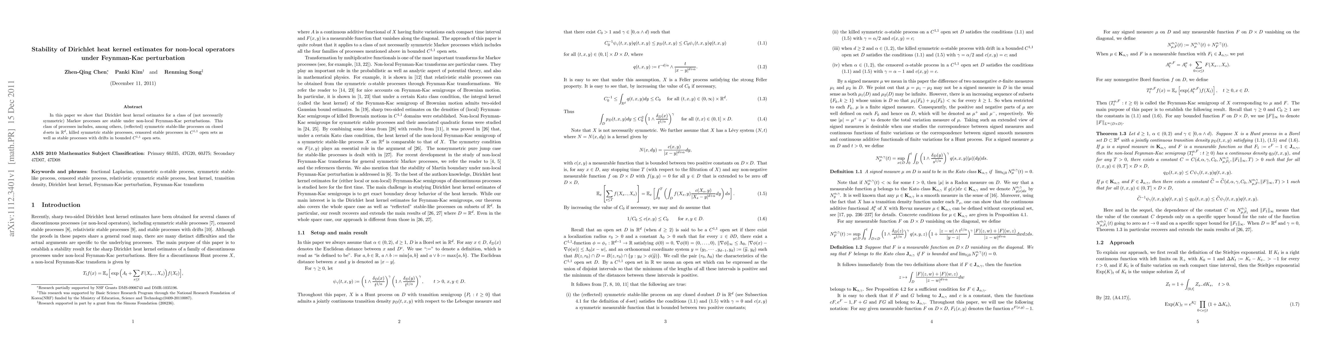 Summary: This research demonstrates the stability of Dirichlet heat kernel estimates for various non-local Markov processes, including stable-like processes under Feynman-Kac perturbations, despite non-symmetry and different types of modifications. The results apply broadly to processes on closed and open sets with drifts.
