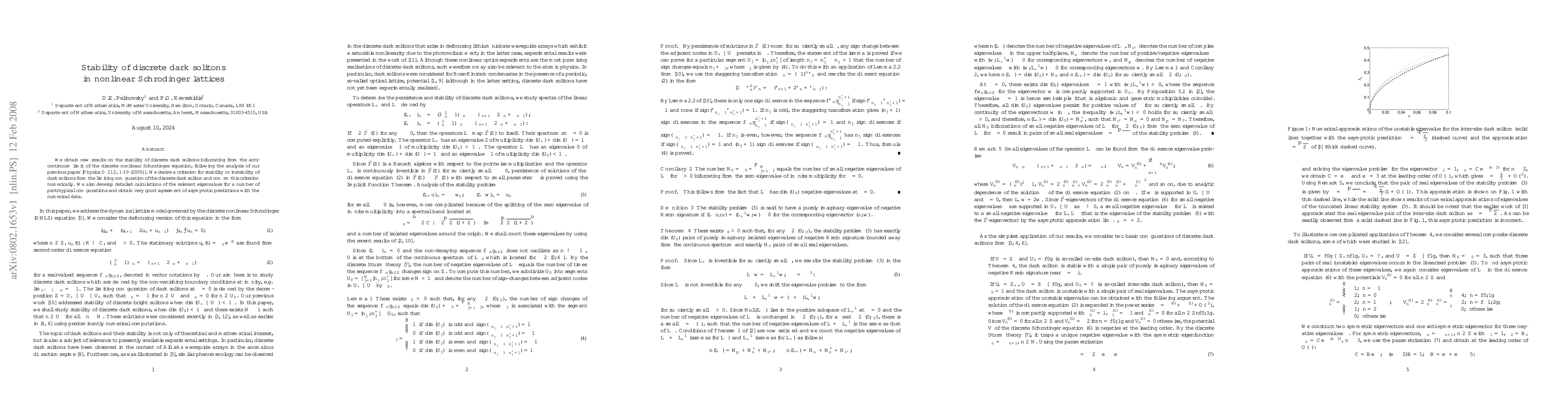 This research investigates the stability of discrete dark solitons in nonlinear Schrödinger lattices, deriving a stability criterion based on the limiting configuration and confirming it numerically. Detailed eigenvalue calculations for prototypical configurations show strong agreement with asymptotic predictions.