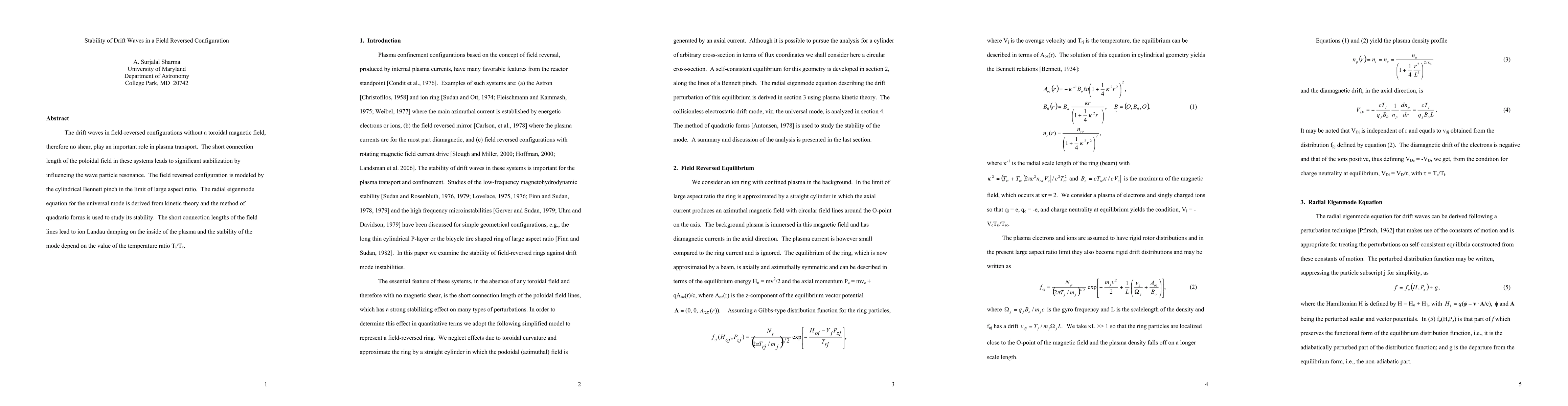This paper investigates the stability of drift waves in field-reversed configurations, focusing on the absence of toroidal magnetic shear. It finds significant stabilization due to the short poloidal field connection length, which enhances ion Landau damping and depends on the temperature ratio Ti/Te.
