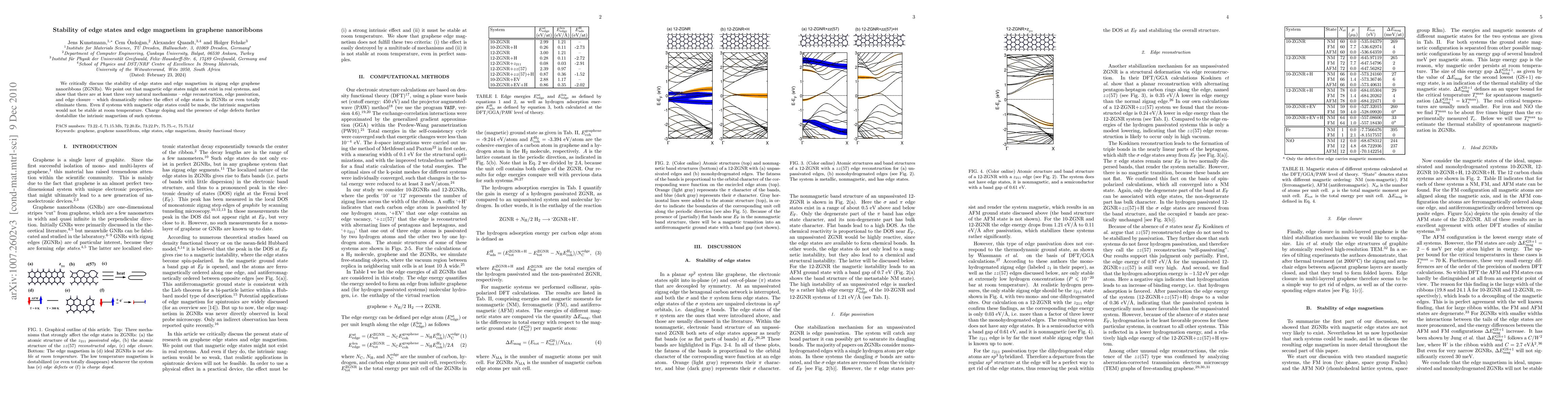 The paper presents detailed DFT calculations to analyze the stability of edge states and magnetism in ZGNRs, identifying key mechanisms that reduce or eliminate edge magnetism.