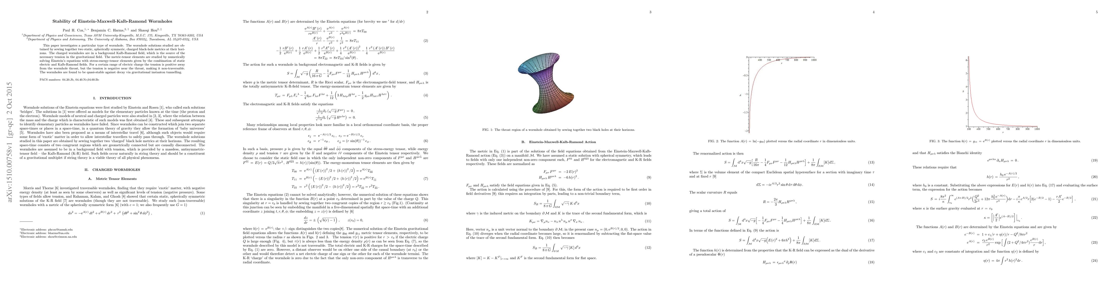 This paper examines Einstein-Maxwell-Kalb-Ramond wormholes formed by connecting two charged black holes in a Kalb-Ramond field, finding quasi-stability against decay despite a tension switch from positive to negative near the throat, rendering them non-traversable.