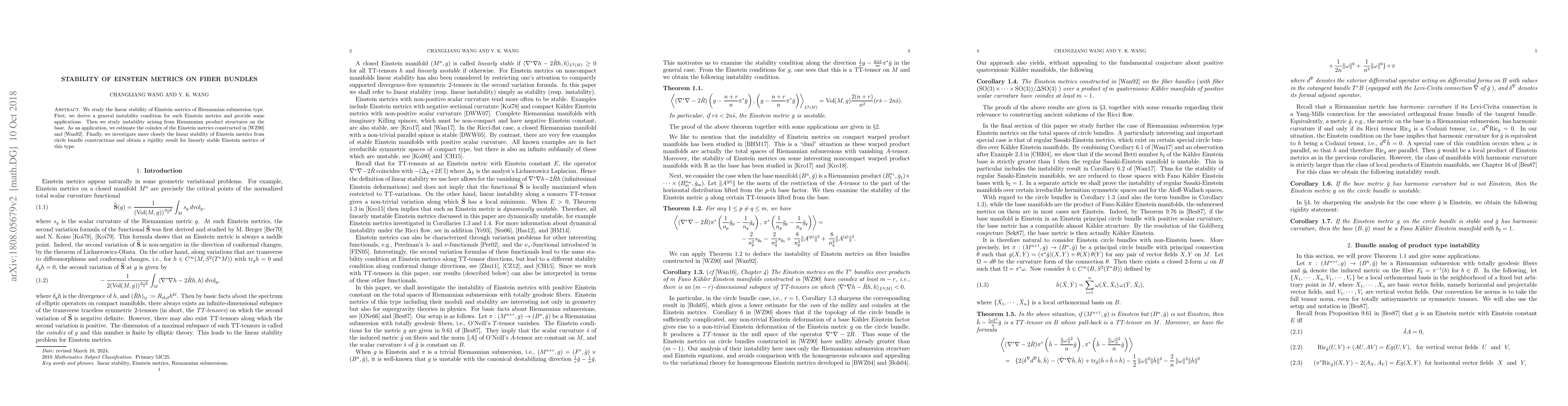 This paper investigates the stability of Einstein metrics in Riemannian submersion type, deriving a general instability condition and exploring specific cases of instability from Riemannian product structures. It concludes with a rigidity result for linearly stable Einstein metrics from circle bundle constructions.