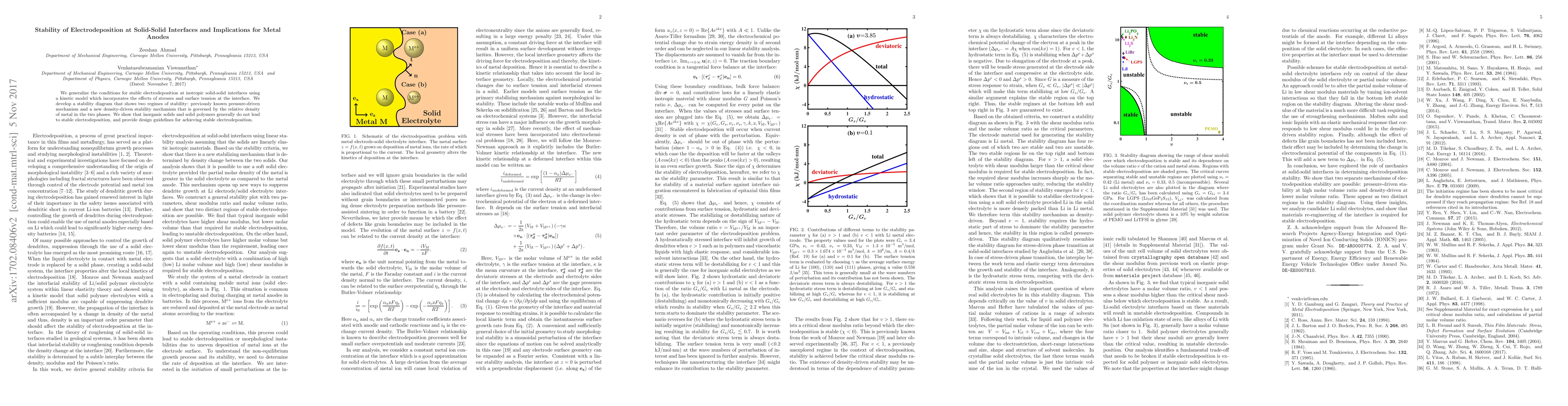 We generalize the conditions for stable electrodeposition at isotropic solid-solid interfaces using a kinetic model which incorporates the effects of stresses and surface tension at the interface. We develop a stability diagram that shows two regimes of stability: previously known pressure-driven mechanism and a new density-driven stability mechanism that is governed by the relative density of metal in the two phases. We show that inorganic solids and solid polymers generally do not lead to stable electrodeposition, and provide design guidelines for achieving stable electrodeposition.