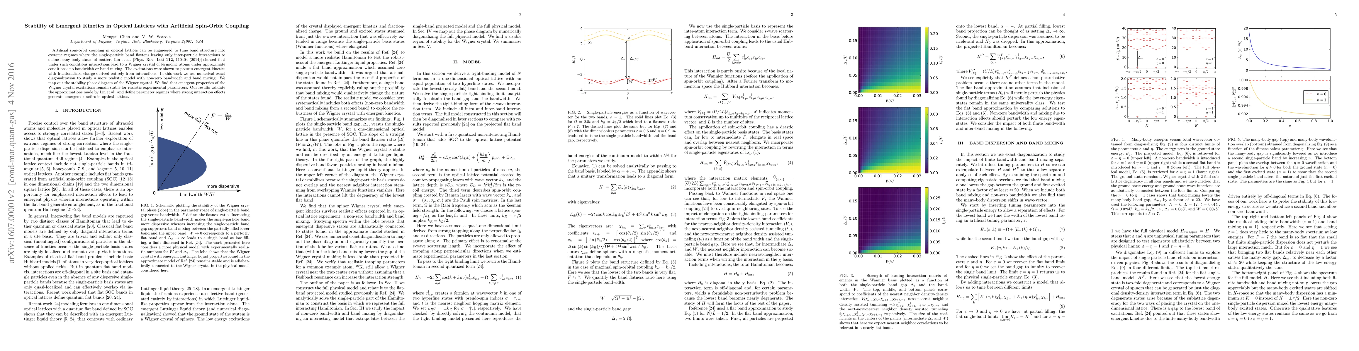 This paper investigates the stability of emergent kinetics in optical lattices with artificial spin-orbit coupling, confirming that the Wigner crystal's properties remain robust under realistic conditions with non-zero bandwidth and band mixing, thus validating previous theoretical approximations.