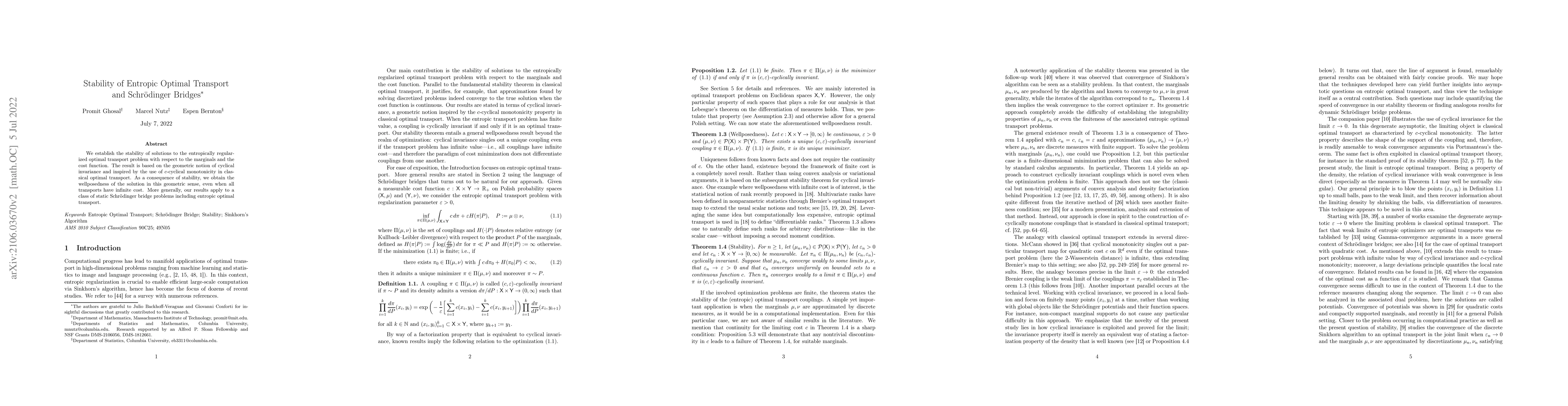 This paper proves stability for entropically regularized optimal transport solutions concerning marginals and cost functions, leveraging cyclical invariance and $c$-cyclical monotonicity. The findings ensure wellposedness of solutions even for infinite cost scenarios, extending to a range of Schr\"odinger bridge problems.