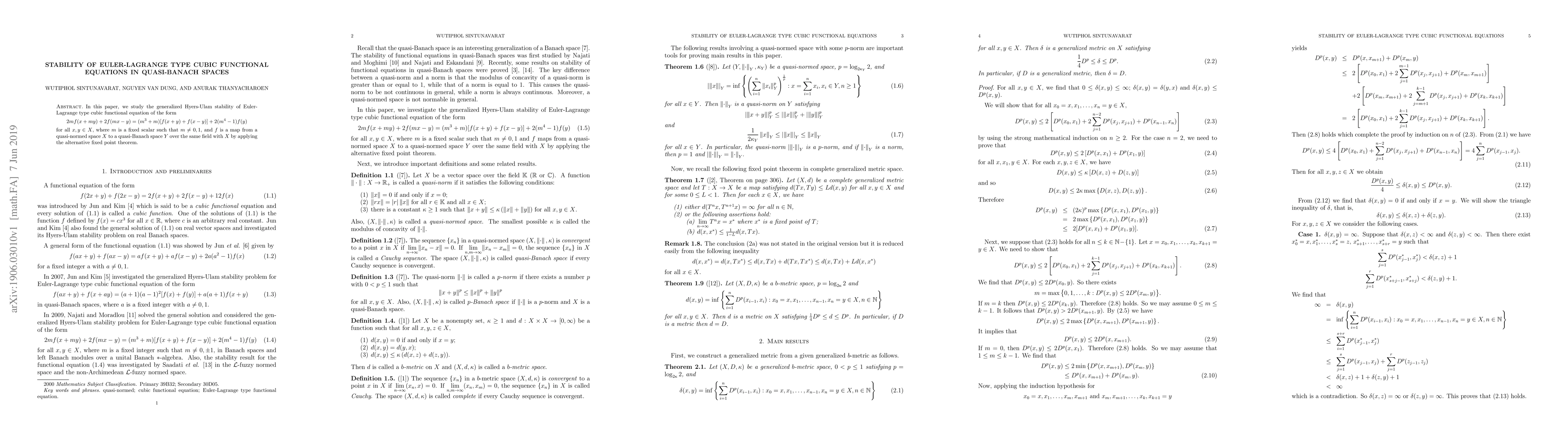 This paper investigates the stability of Euler-Lagrange type cubic functional equations in quasi-Banach spaces, focusing on generalized Hyers-Ulam stability for a given form of the equation involving fixed scalar $m$ and map $f$.