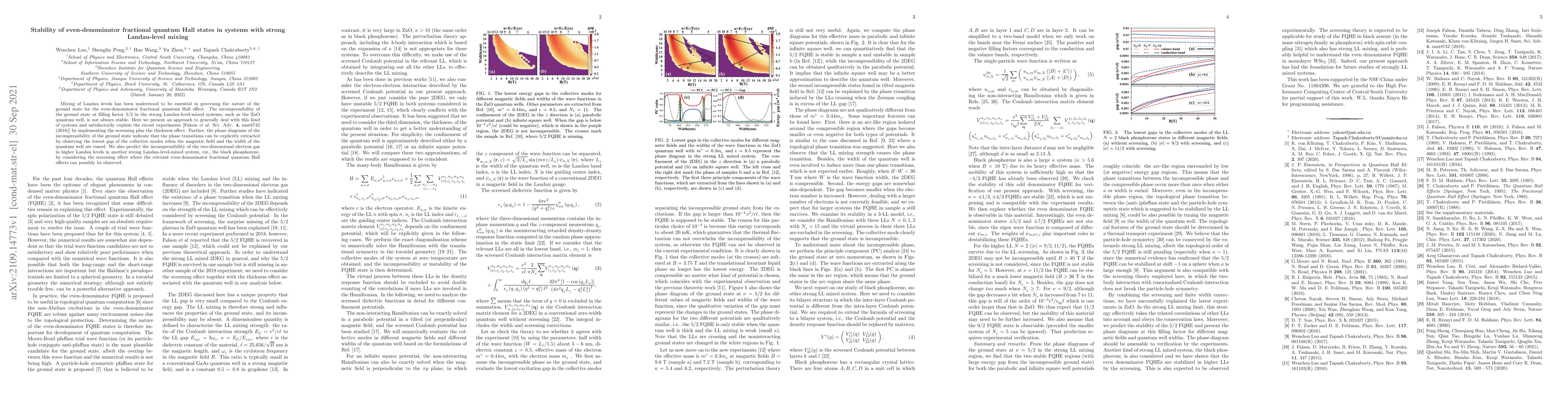 Mixing of Landau levels has been understood to be essential in governing the nature of the ground state for the even-denominator fractional quantum Hall effect. The incompressibility of the ground state at filling factor $5/2$ in the strong Landau-level-mixed systems, such as the ZnO quantum well, is not always stable. Here we present an approach to generally deal with this kind of systems and satisfactorily explain the recent experiments [Falson \textit{et al}. Sci. Adv. \textbf{4}, eaat8742 (2018)] by implementing the screening plus the thickness effect. Further, the phase diagrams of the incompressibility of the ground state indicate that the phase transitions can be explicitly extracted by observing the lowest gap of the collective modes when the magnetic field and the width of the quantum well are tuned. We also predict the incompressibility of the two-dimensional electron gas in higher Landau levels in another strong Landau-level-mixed system, viz., the black phosphorene, by considering the screening effect where the relevant even-denominator fractional quantum Hall effects can possibly be observed.