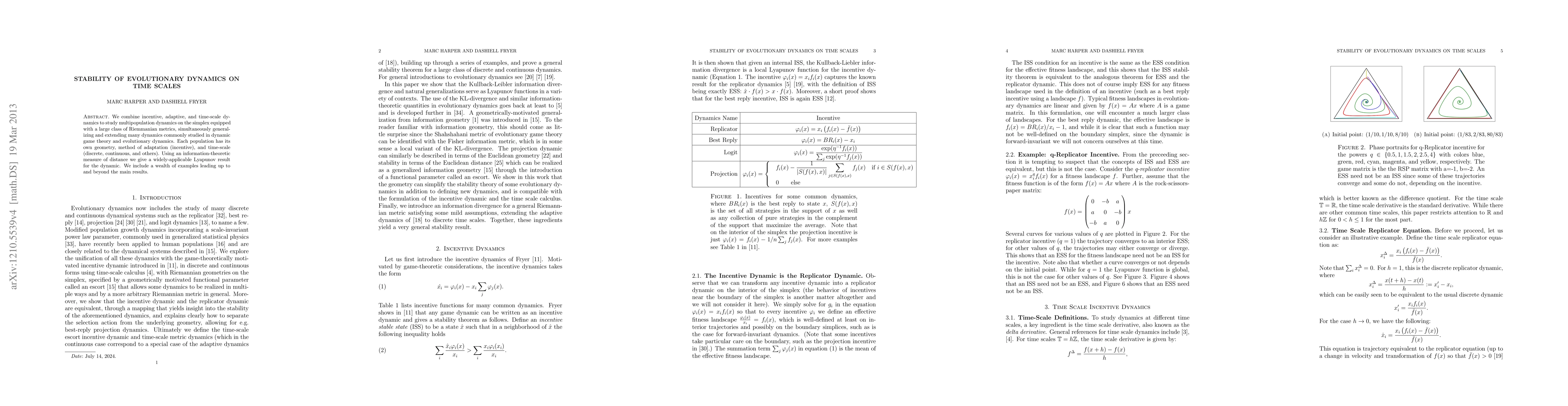 We combine incentive, adaptive, and time-scale dynamics to study multipopulation dynamics on the simplex equipped with a large class of Riemmanian metrics, simultaneously generalizing and extending many dynamics commonly studied in dynamic game theory and evolutionary dynamics. Each population has its own geometry, method of adaptation (incentive), and time-scale (discrete, continuous, and others). Using an information-theoretic measure of distance we give a widely-applicable Lyapunov result for the dynamic. We include a wealth of examples leading up to and beyond the main results.