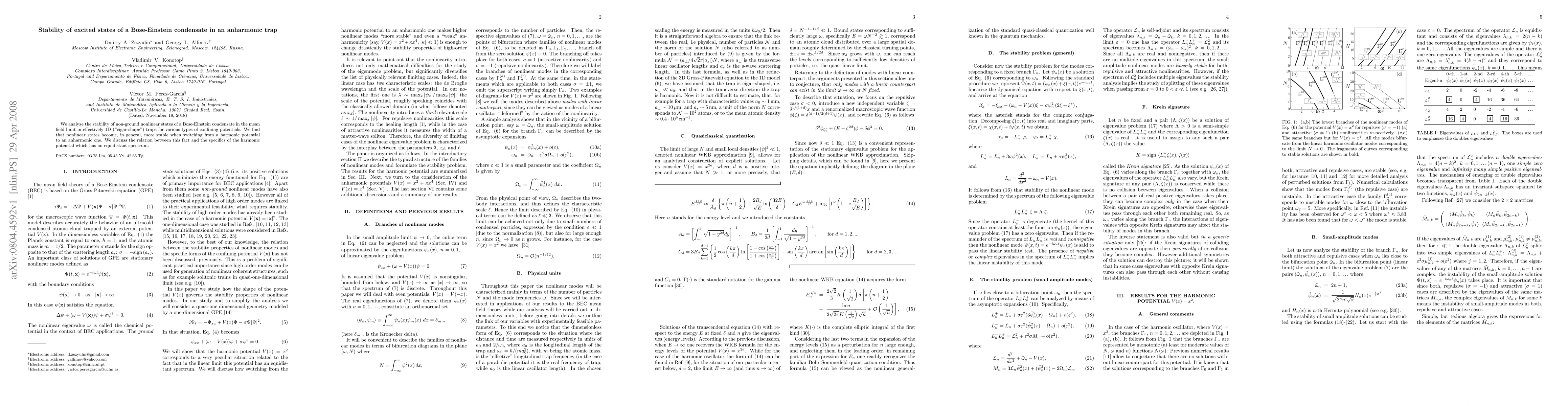 Research shows that nonlinear states of a Bose-Einstein condensate become more stable in anharmonic traps compared to harmonic ones, with the latter having an equidistant spectrum.