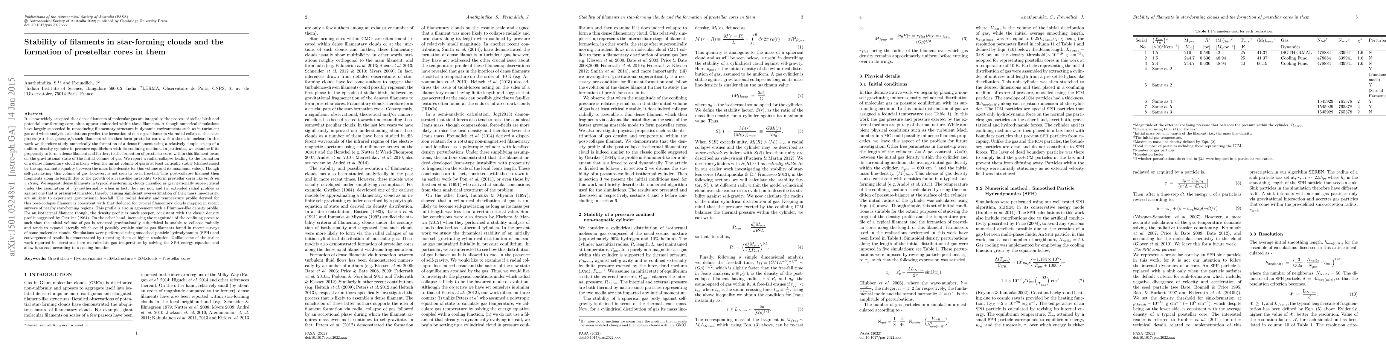 This research numerically investigates the formation of dense filaments in star-forming clouds and the subsequent development of prestellar cores, finding that radial collapse in critically stable gas volumes leads to filament formation. The study suggests that such filaments fragment due to Jeans-like instability, forming prestellar cores, and that misclassified super-critical filaments may not be in free-fall.