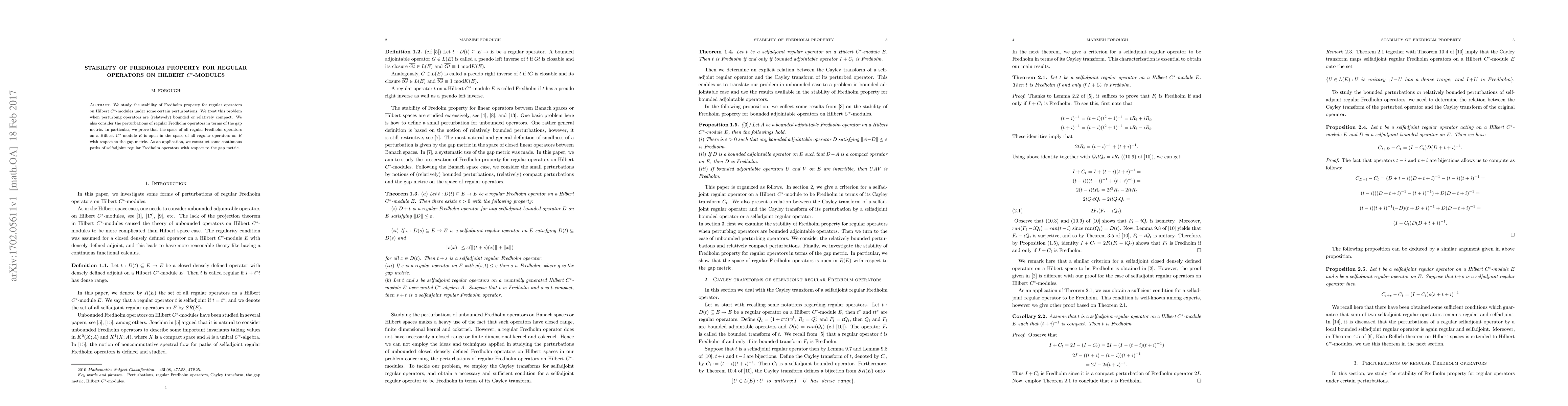 This paper investigates the stability of the Fredholm property for regular operators on Hilbert $C^*$-modules under bounded or compact perturbations. It proves that the space of regular Fredholm operators is open in the space of all regular operators, demonstrating the robustness of the Fredholm property and constructing continuous paths of selfadjoint operators.