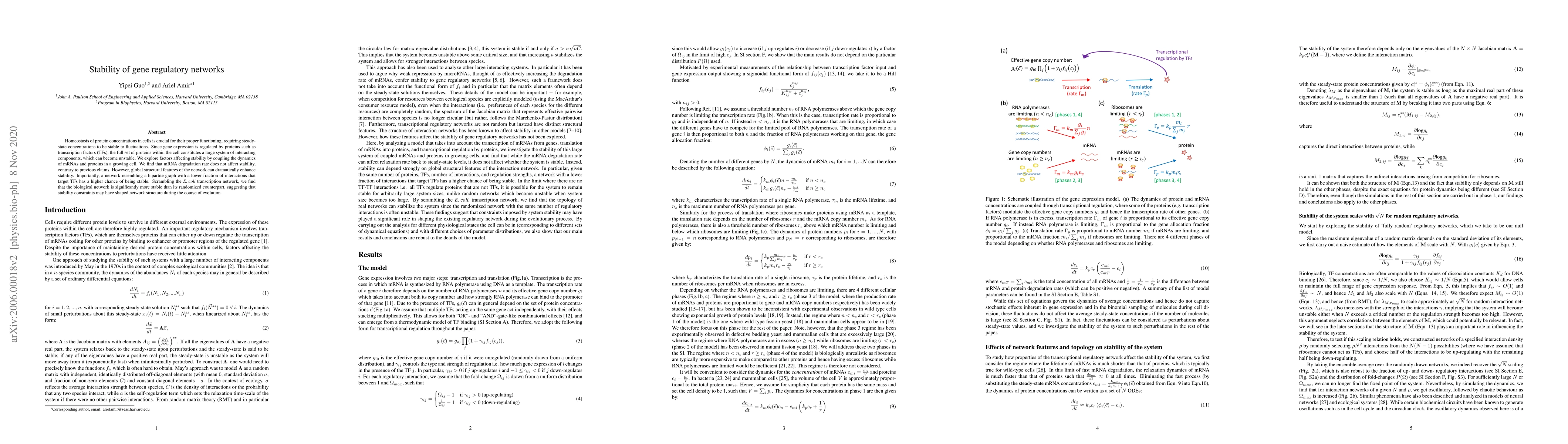 The stability of gene regulatory networks can be affected by network structure and regulation strengths, with bipartite graphs showing higher stability than random networks. This suggests constraints on system stability may have shaped the existing regulatory network during evolution.