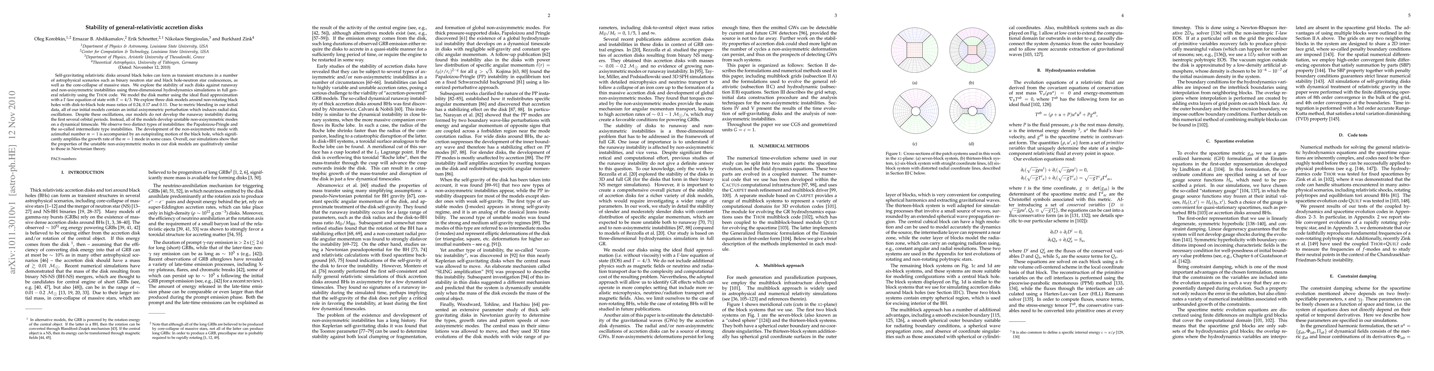 This paper investigates the stability of relativistic accretion disks around black holes using three-dimensional hydrodynamics simulations in general relativity. The study finds that despite initial perturbations, the disks do not develop runaway instabilities but instead exhibit non-axisymmetric modes, similar to those observed in Newtonian theory.