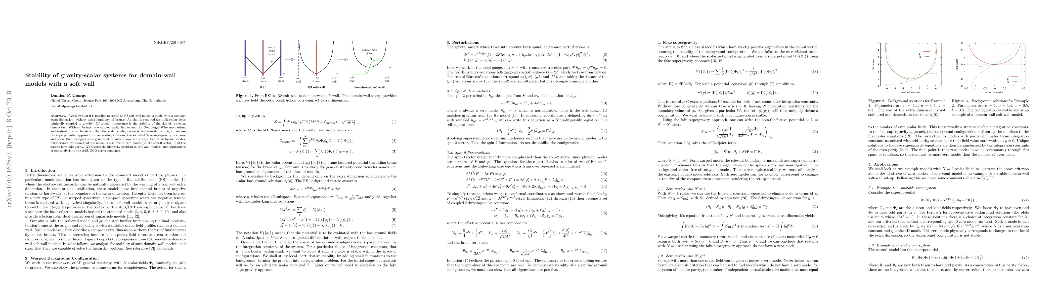 We show that it is possible to create an RS soft-wall model, a model with a compact extra dimension, without using fundamental branes. All that is required are bulk scalar fields minimally coupled to gravity. Of crucial importance is the stability of the size of the extra dimension. Without branes, one cannot easily implement the Goldberger-Wise mechanism, and instead it must be shown that the scalar configuration is stable in its own right. We use the superpotential approach for generating solutions, the so called 'fake supergravity' scenario, and show that configurations generated in such a way are always free of tachyonic modes. Furthermore, we show that the model is also free of zero modes (in the spin-0 sector) if all the scalars have odd parity. We discuss the hierarchy problem in soft-wall models, and applications of our analysis to the AdS/QCD correspondence.