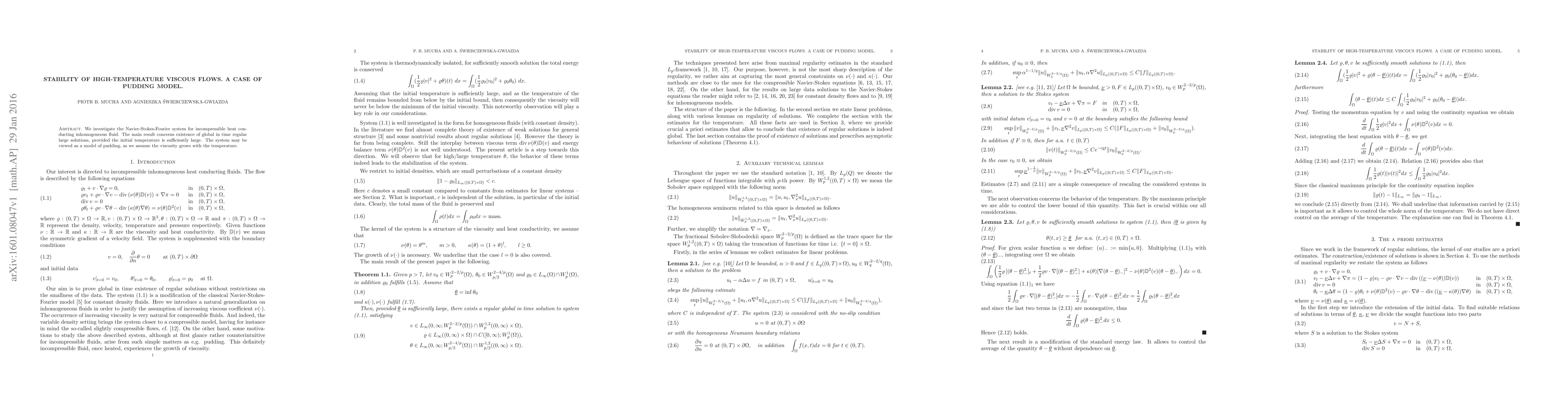 We investigate the Navier-Stokes-Fourier system for incompressible heat conducting inhomogeneous fluid. The main result concerns existence of global in time regular large solutions, provided the initial temperature is sufficiently large. The system may be viewed as a model of pudding, as we assume the viscosity grows with the temperature.