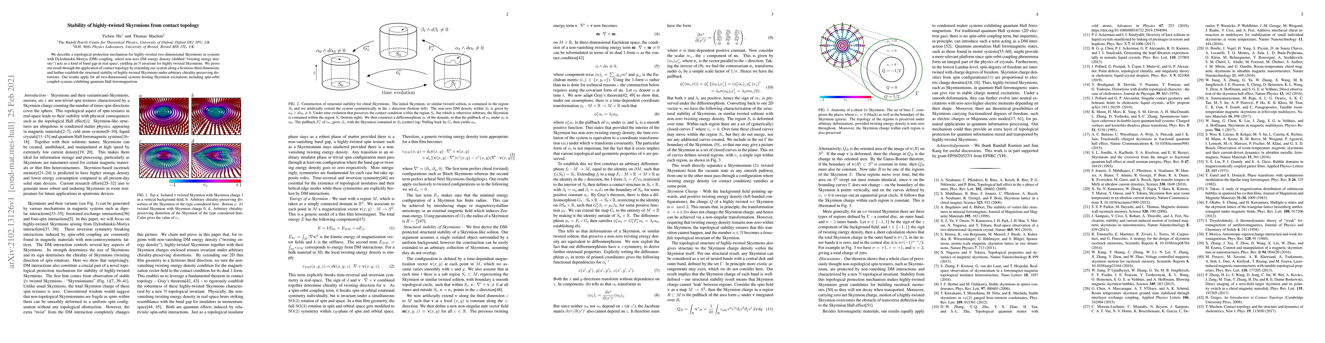 Researchers describe a new protection mechanism for highly-twisted Skyrmions in systems with spin-orbit coupling, showing they remain stable under arbitrary distortions. This discovery opens up new possibilities for studying these topological defects in two-dimensional materials.