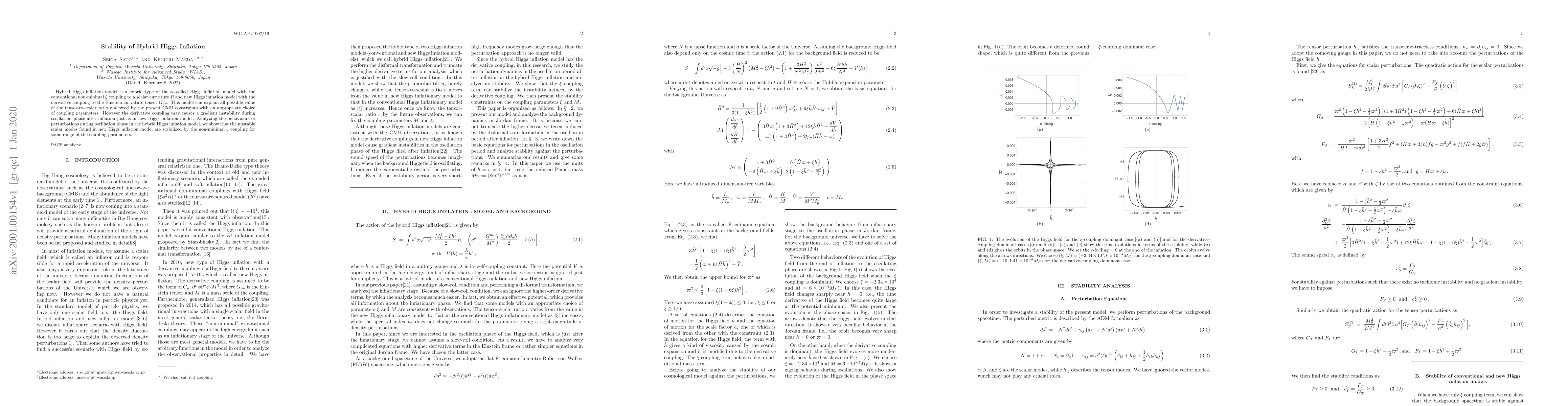 Hybrid Higgs inflation model is a hybrid type of the so-called Higgs inflation model with the conventional non-minimal $\xi$ coupling to a scalar curvature $R$ and new Higgs inflation model with the derivative coupling to the Einstein curvature tensor $G_{\mu\nu}$. This model can explain all possible value of the tensor-to-scalar ratio $r$ allowed by the present CMB constraints with an appropriate choice of coupling parameters. However the derivative coupling may causes a gradient instability during oscillation phase after inflation just as in new Higgs inflation model. Analyzing the behaviours of perturbations during oscillation phase in the hybrid Higgs inflation model, we show that the unstable scalar modes found in new Higgs inflation model are stabilized by the non-minimal $\xi$ coupling for some range of the coupling parameters.