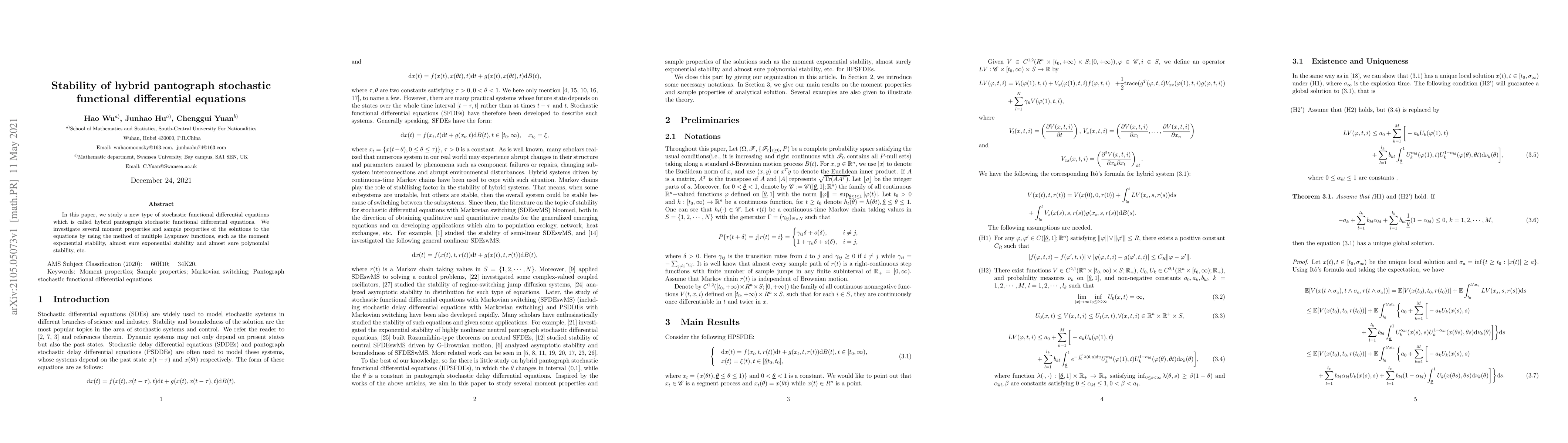 This paper explores hybrid pantograph stochastic functional differential equations, focusing on their moment properties and sample properties. It employs multiple Lyapunov functions to analyze moment exponential stability, almost sure exponential stability, and almost sure polynomial stability.