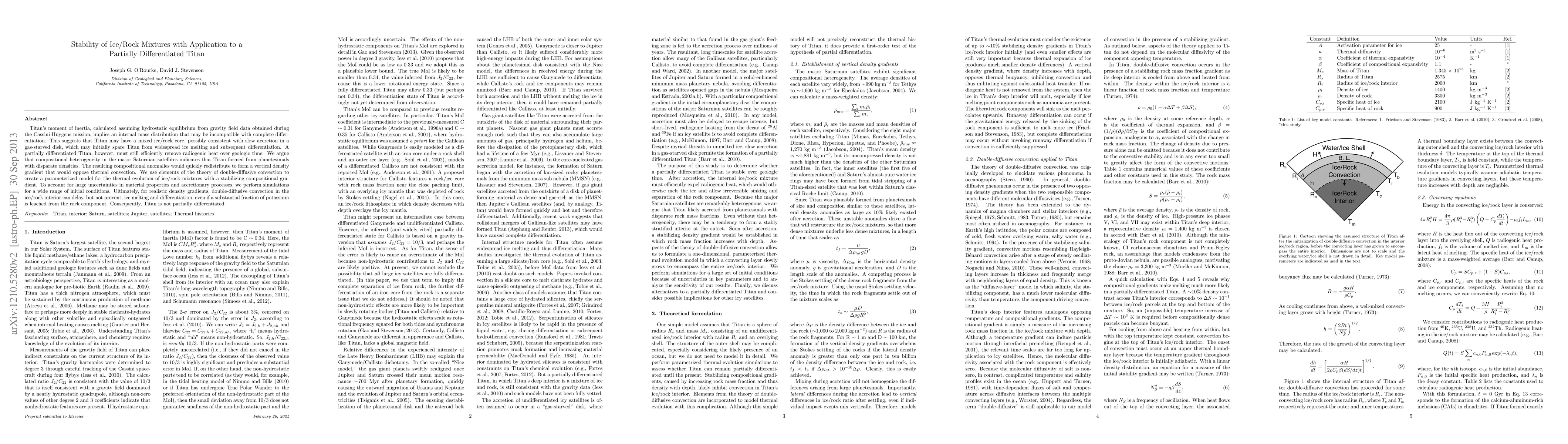 This paper investigates the stability of ice/rock mixtures within Titan's interior, suggesting that its moment of inertia implies an internal mass distribution inconsistent with complete differentiation. The study proposes that Titan's formation from planetesimals with varying densities could create a compositional gradient that delays but does not prevent ice melting and differentiation, concluding that Titan is not partially differentiated.