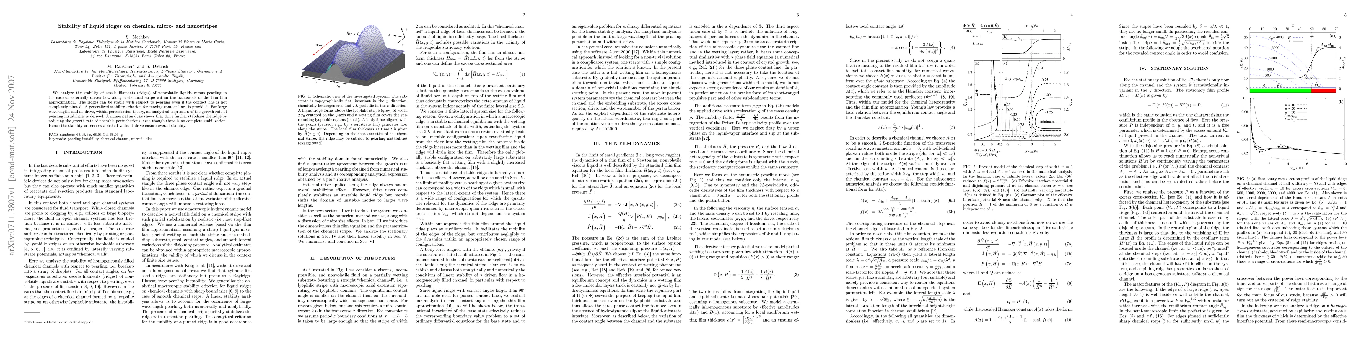 Researchers studied the stability of liquid ridges on chemical micro- and nanostripes and found that even without complete contact line pinning, ridges can remain stable under certain conditions.