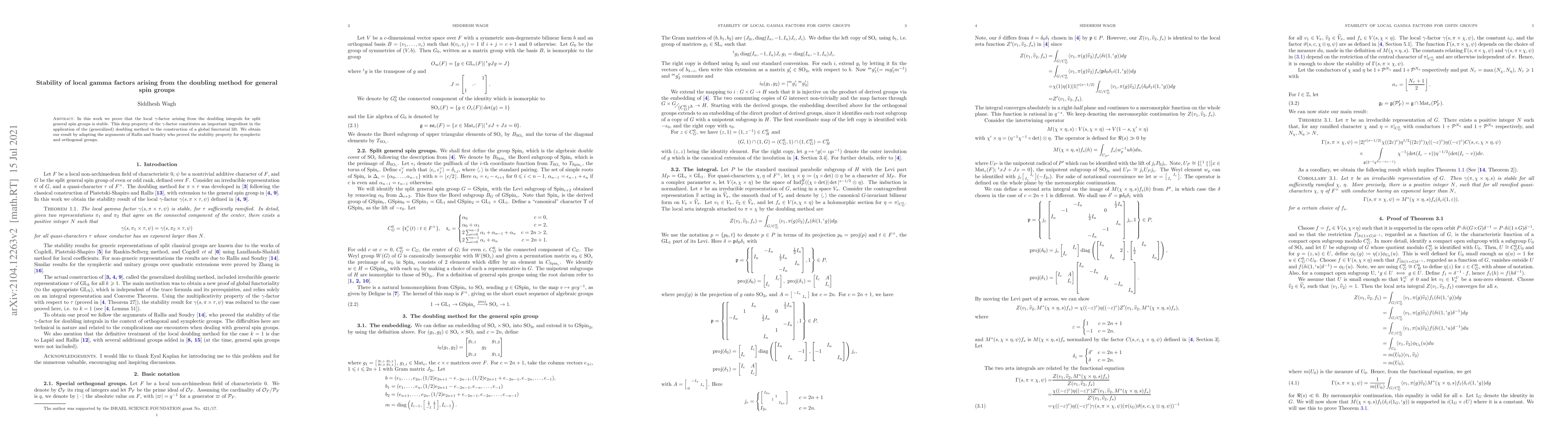 This paper proves the stability of local u03c3-factors from doubling integrals for split general spin groups, a crucial step for applying the doubling method in constructing global functorial lifts. The authors adapt Rallis and Soudry's arguments for symplectic and orthogonal groups.