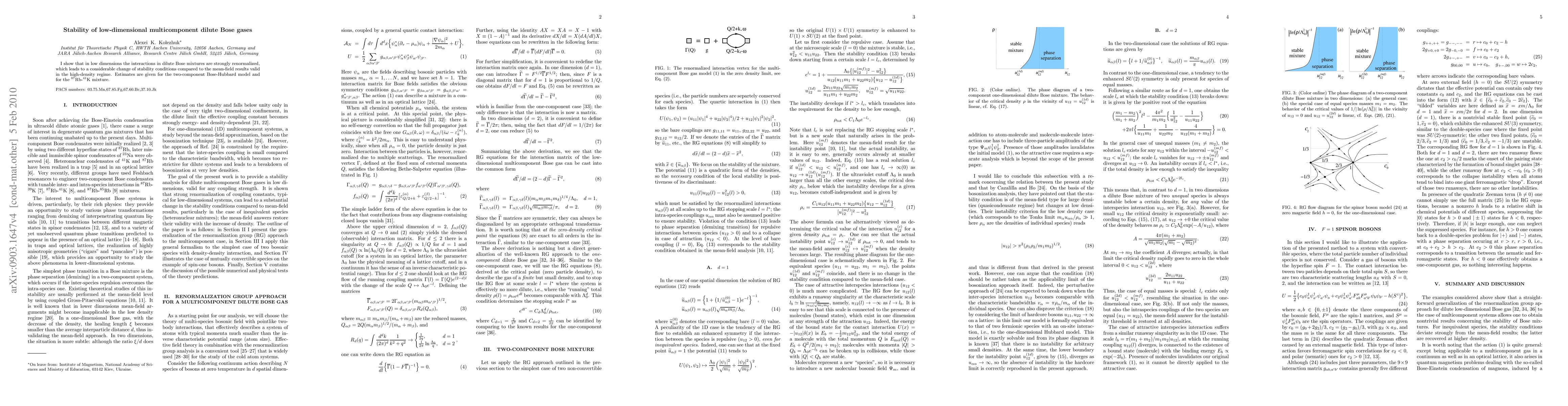 I show that in low dimensions the interactions in dilute Bose mixtures are strongly renormalized, which leads to a considerable change of stability conditions compared to the mean-field results valid in the high-density regime. Estimates are given for the two-component Bose-Hubbard model and for the Rb(87)-K(41) mixture.