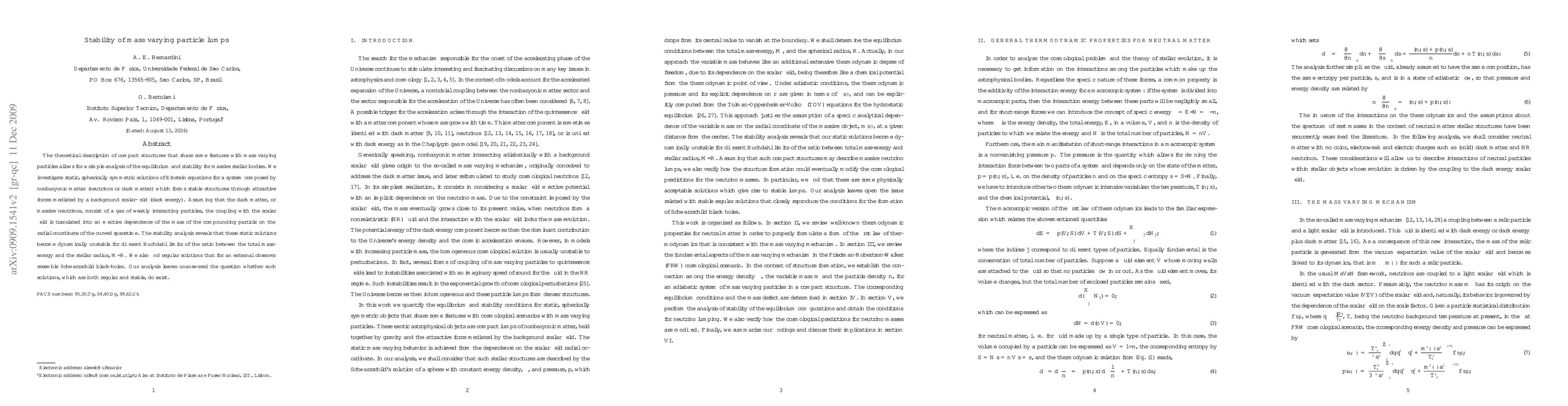 This paper explores the stability of compact structures composed of mass-varying particles, such as neutrinos or dark matter, interacting via a scalar field. It finds that static solutions become dynamically unstable for certain Buchdahl limits, while regular solutions resembling Schwarzschild black holes remain an open question.