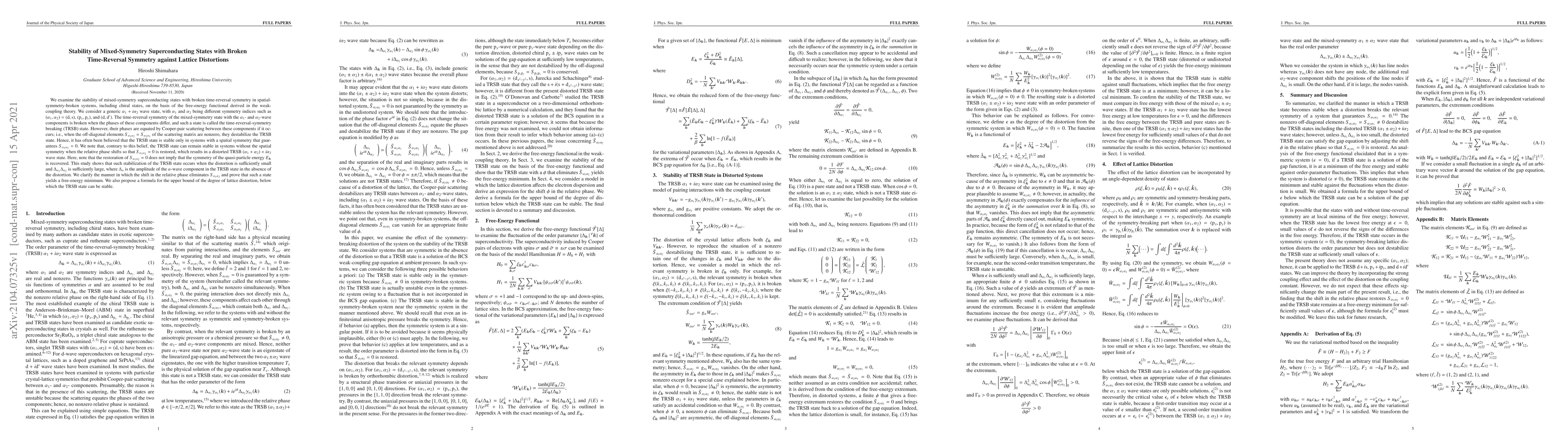 Researchers studied the stability of mixed-symmetry superconducting states with broken time-reversal symmetry in lattice systems and found that these states can remain stable even without spatial symmetry, under certain conditions.