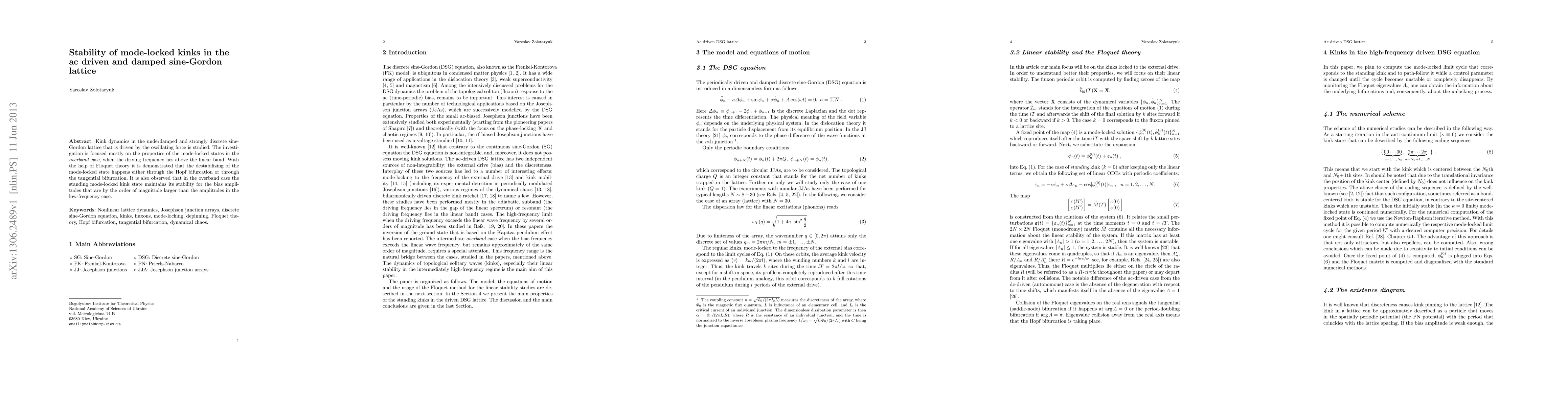 This paper investigates the stability of mode-locked kinks in an ac-driven, damped sine-Gordon lattice, focusing on the overband case where the driving frequency exceeds the linear band. It demonstrates that destabilization occurs via Hopf or tangential bifurcations, while the standing mode-locked kink state remains stable for significantly larger bias amplitudes compared to low-frequency cases.