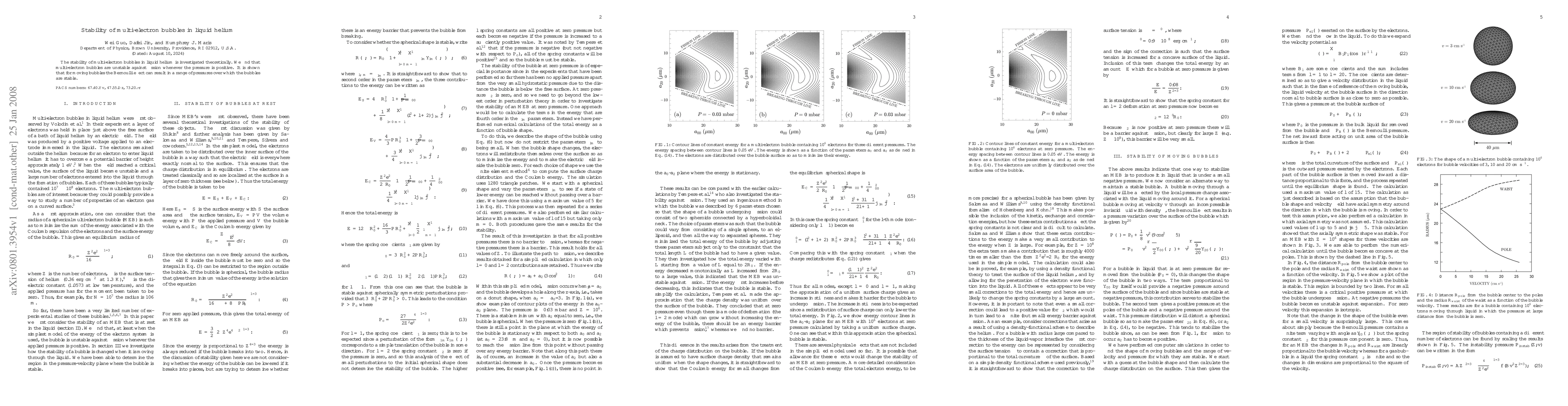 Summary: This study theoretically examines the stability of multi-electron bubbles in liquid helium, finding that they are unstable under positive pressure but can be stable over certain pressure ranges due to the Bernoulli effect when in motion.