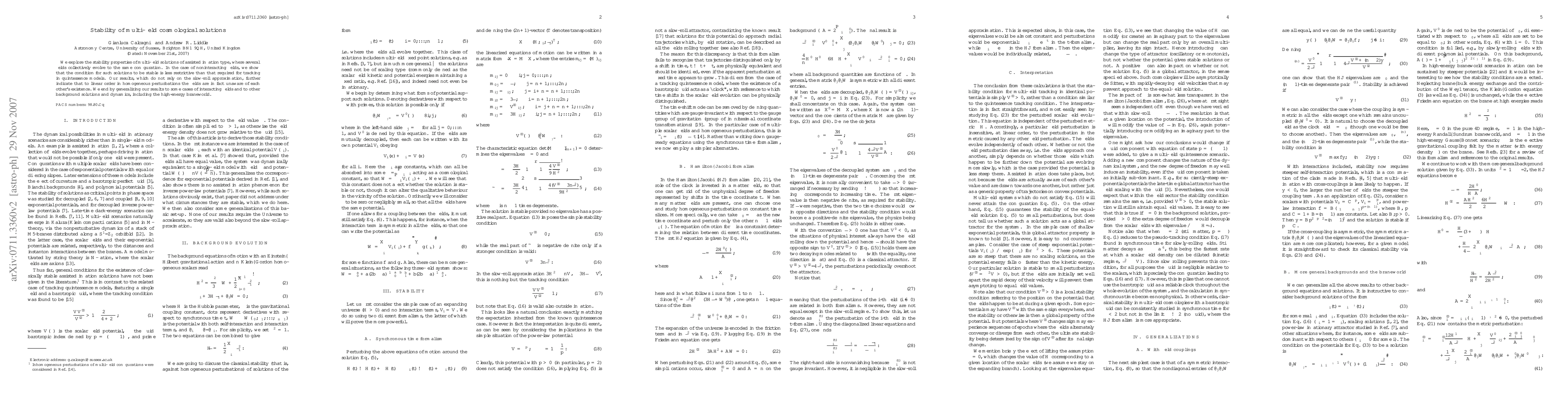 This paper explores the stability of multi-field cosmological solutions in assisted inflation type models, showing that noninteracting fields are more stable than previously thought, with a lesser requirement for tracking in quintessence models.