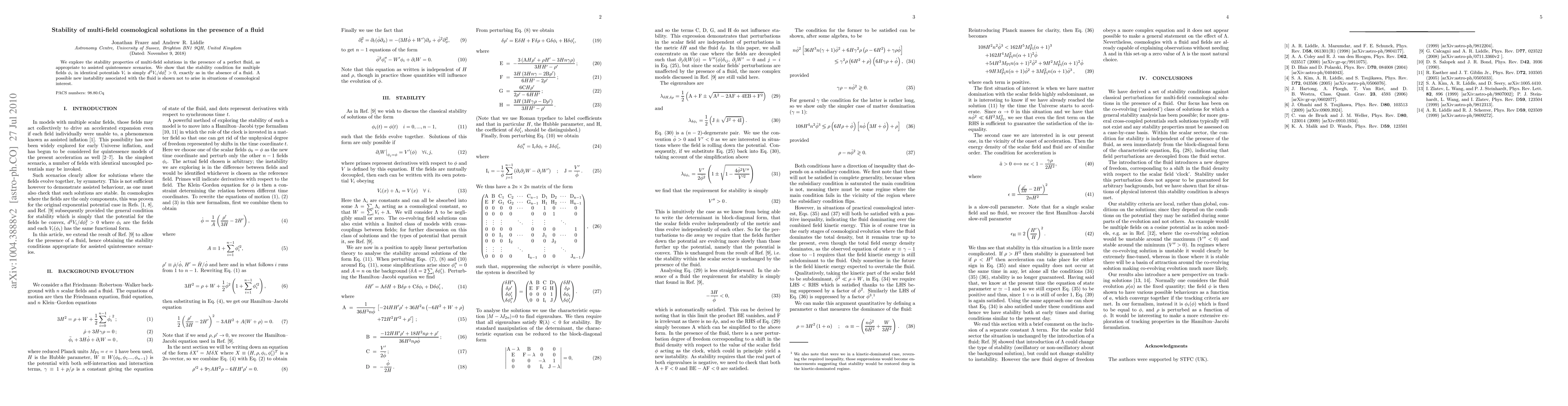 Multi-field cosmological solutions in the presence of a fluid exhibit stability when the condition $d^2V_i/d heta_i^2 > 0$ is met, similar to their behavior without fluid.