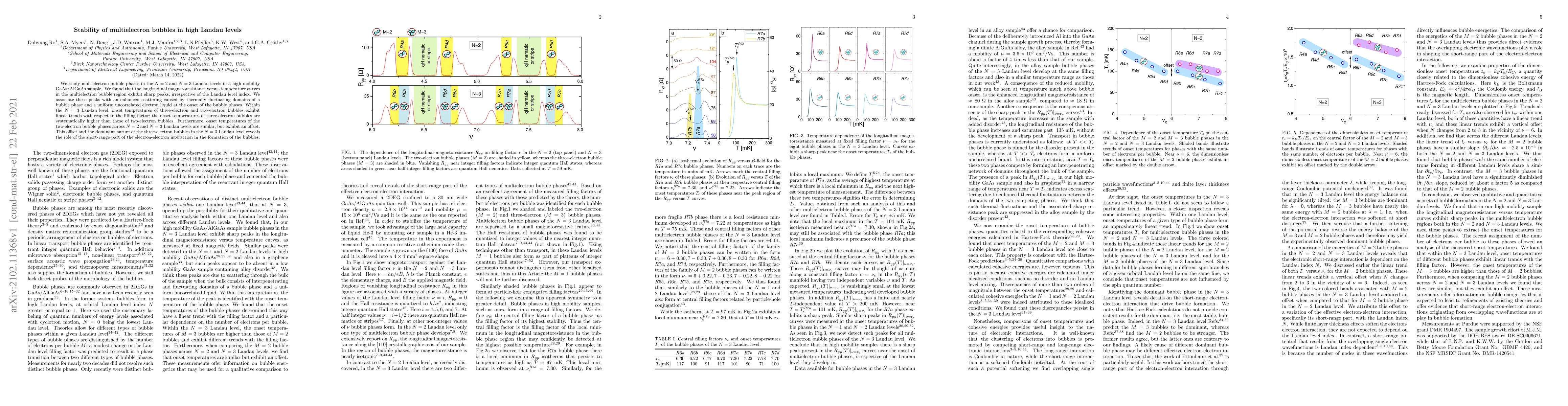 This paper investigates multielectron bubble phases in high Landau levels of GaAs/AlGaAs, finding sharp peaks in longitudinal magnetoresistance curves linked to enhanced scattering from bubble phase fluctuations. The study reveals that onset temperatures for bubble formation in $N=3$ show linear trends and are higher for three-electron bubbles compared to two-electron bubbles, highlighting the influence of electron-electron interactions.