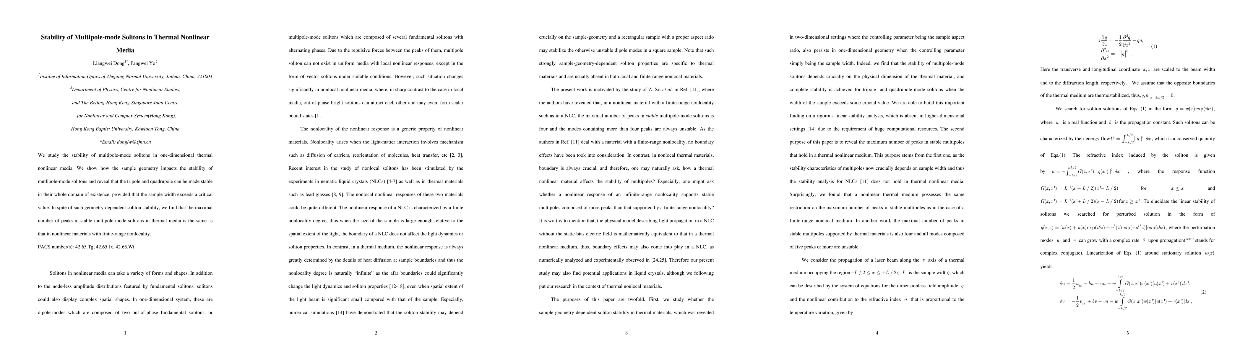 This paper investigates the stability of multipole-mode solitons in thermal nonlinear media, demonstrating that sample geometry significantly influences stability, with tripole and quadrupole solitons becoming stable when the sample width exceeds a critical value. Despite geometry-dependent stability, the maximum number of peaks in stable multipole-mode solitons remains consistent with nonlocal nonlinear materials.