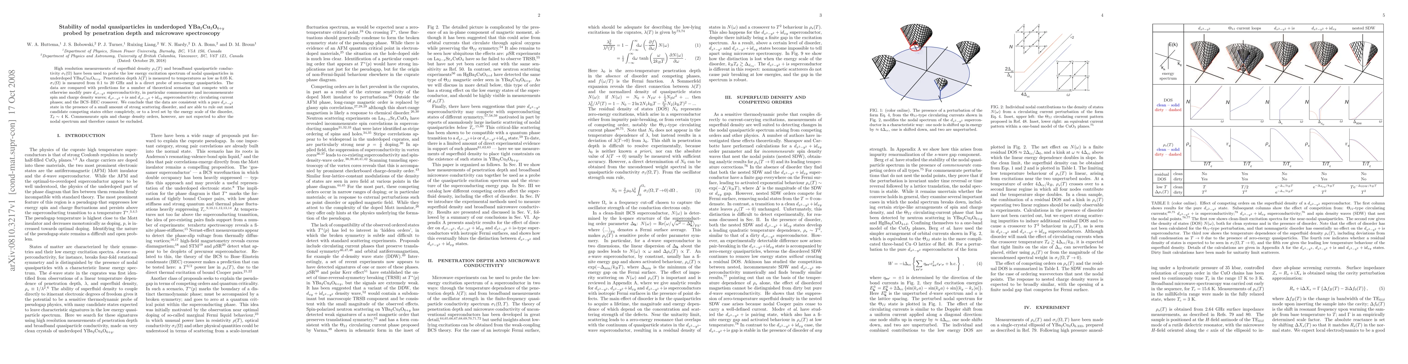 High resolution measurements of superfluid density and broadband quasiparticle conductivity have been used to probe the low energy excitation spectrum of nodal quasiparticles in underdoped YBCO. Penetration depth is measured to temperatures as low as 0.05 K. Microwave conductivity is measured from 0.1 to 20 GHz and is a direct probe of zero-energy quasiparticles. The data are compared with predictions for a number of theoretical scenarios that compete with or otherwise modify pure d-wave superconductivity, in particular commensurate and incommensurate spin and charge density waves; d + i s and d + i d superconductivity; circulating current phases; and the BCS--BEC crossover. We conclude that the data are consistent with a pure d-wave state in the presence of a small amount of strong scattering disorder, and are able to rule out most candidate competing states either completely, or to a level set by the energy scale of the disorder, ~ 4 K. Commensurate spin and charge density orders, however, are not expected to alter the nodal spectrum and therefore cannot be excluded.