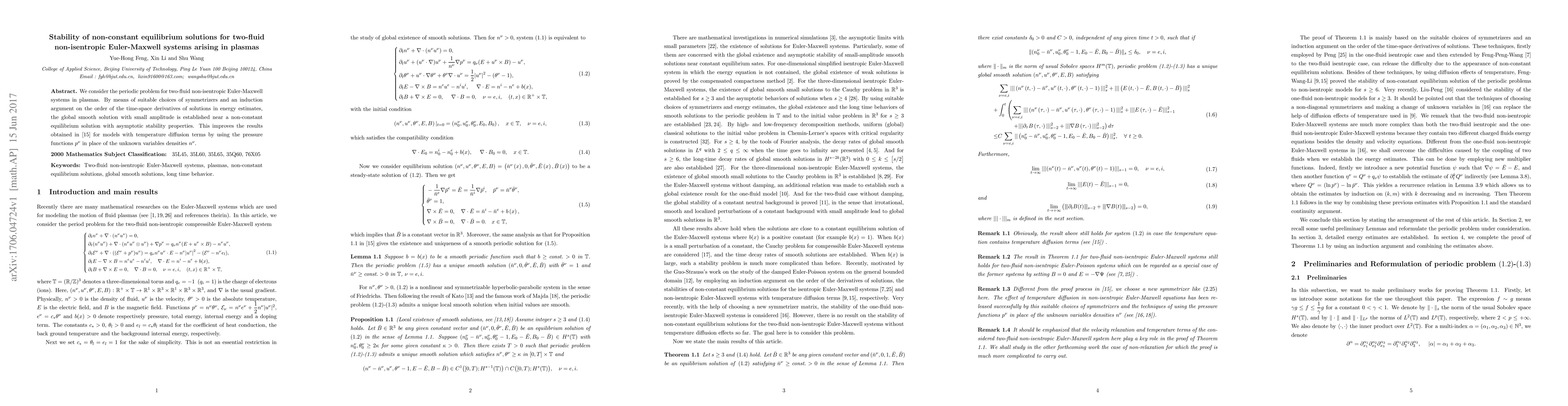 A research paper establishes global smooth solutions for two-fluid non-isentropic Euler-Maxwell systems in plasmas, improving upon previous results with asymptotic stability properties.