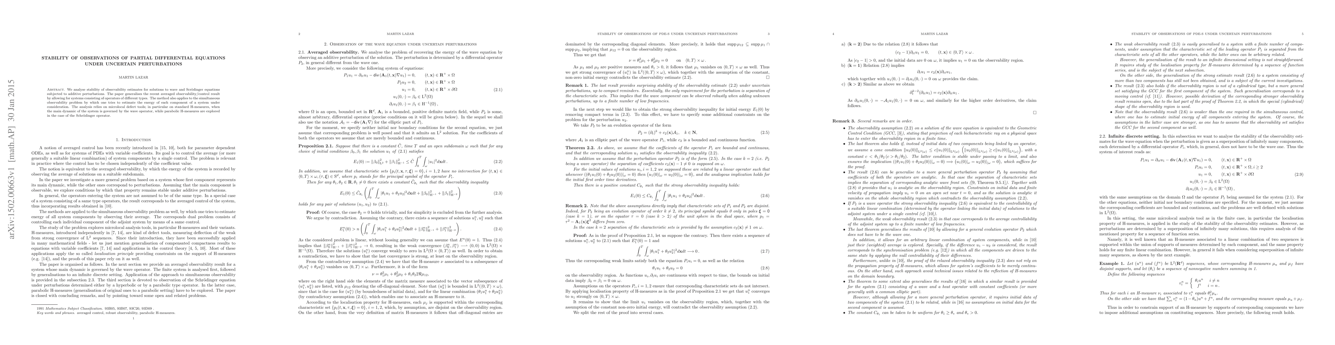 We analyse stability of observability estimates for solutions to wave and Scr\" odinger equations subjected to additive perturbations. The paper generalises the recent averaged observability/control result by allowing for systems consisting of operators of different types. The method also applies to the simultaneous observability problem by which one tries to estimate the energy of each component of a system under consideration. The analysis relies on microlocal defect tools; in particular on standard H-measures, when the main dynamic of the system is governed by the wave operator, while parabolic H-measures are explored in the case of the Schr\" odinger operator.