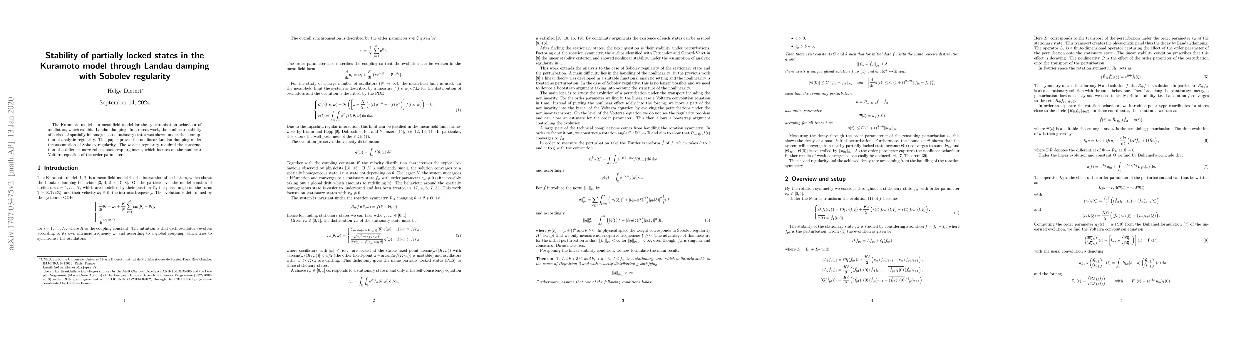 This paper investigates the stability of partially locked states in the Kuramoto model, proving nonlinear Landau damping under Sobolev regularity instead of the previously required analytic regularity, utilizing a robust bootstrap argument centered on the nonlinear Volterra equation of the order parameter.