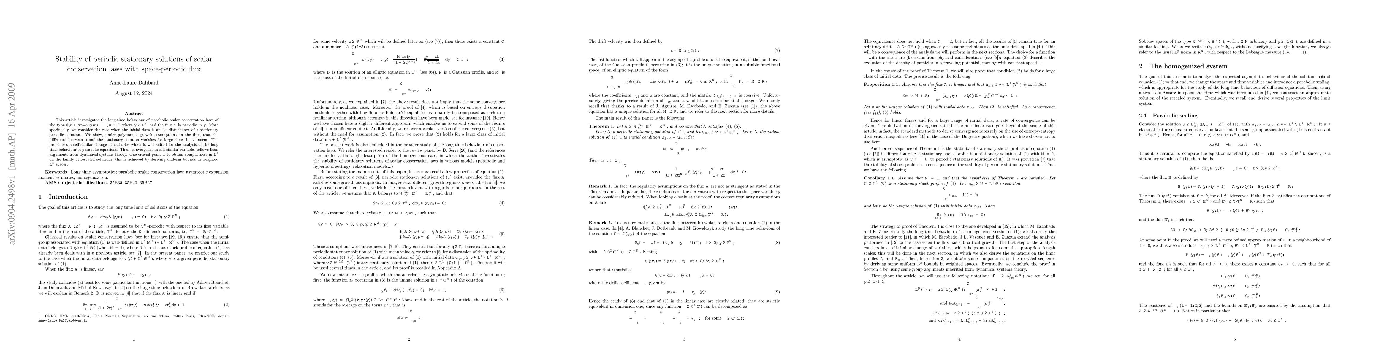 This research demonstrates that for parabolic scalar conservation laws with periodic flux, an L¹ disturbance of a stationary periodic solution converges to the solution in L¹ norm as time progresses. The proof employs a self-similar change of variables and dynamical systems theory, ensuring compactness in L¹ through weighted L² bounds.
