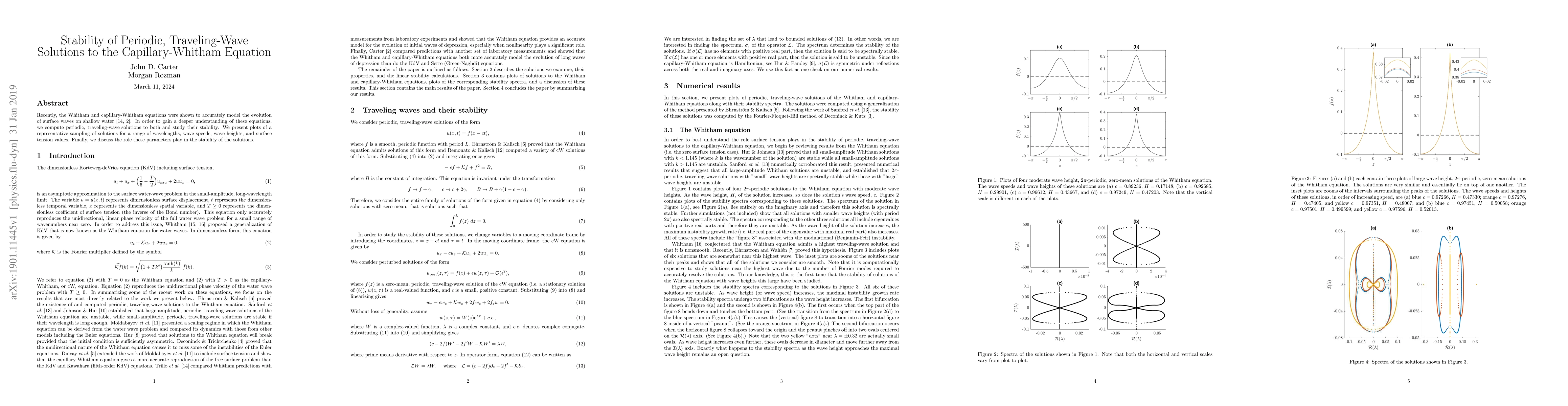 Recently, the Whitham and capillary-Whitham equations were shown to accurately model the evolution of surface waves on shallow water. In order to gain a deeper understanding of these equations, we compute periodic, traveling-wave solutions to both and study their stability. We present plots of a representative sampling of solutions for a range of wavelengths, wave speeds, wave heights, and surface tension values. Finally, we discuss the role these parameters play in the stability of the solutions.