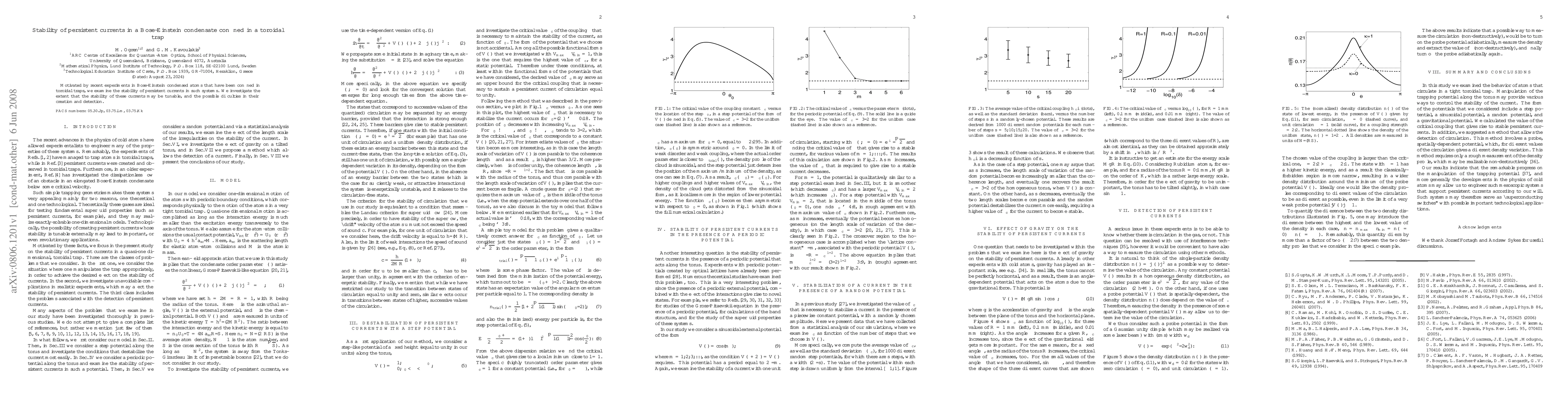 This paper investigates the stability of persistent currents in Bose-Einstein condensates within toroidal traps, exploring their tunability and the challenges associated with their creation and detection, driven by experimental advancements in the field.