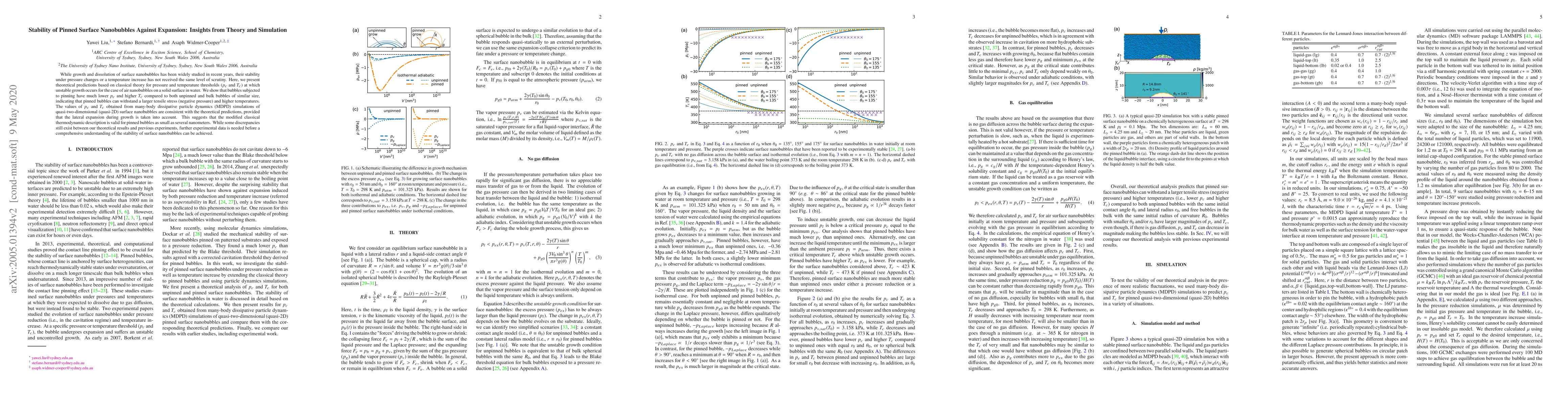 This paper investigates the stability of pinned surface nanobubbles against expansion using theoretical predictions and MDPD simulations. It finds that pinned bubbles have lower pressure and higher temperature thresholds for unstable growth compared to unpinned bubbles, indicating greater stability under tensile stress and temperature increases.