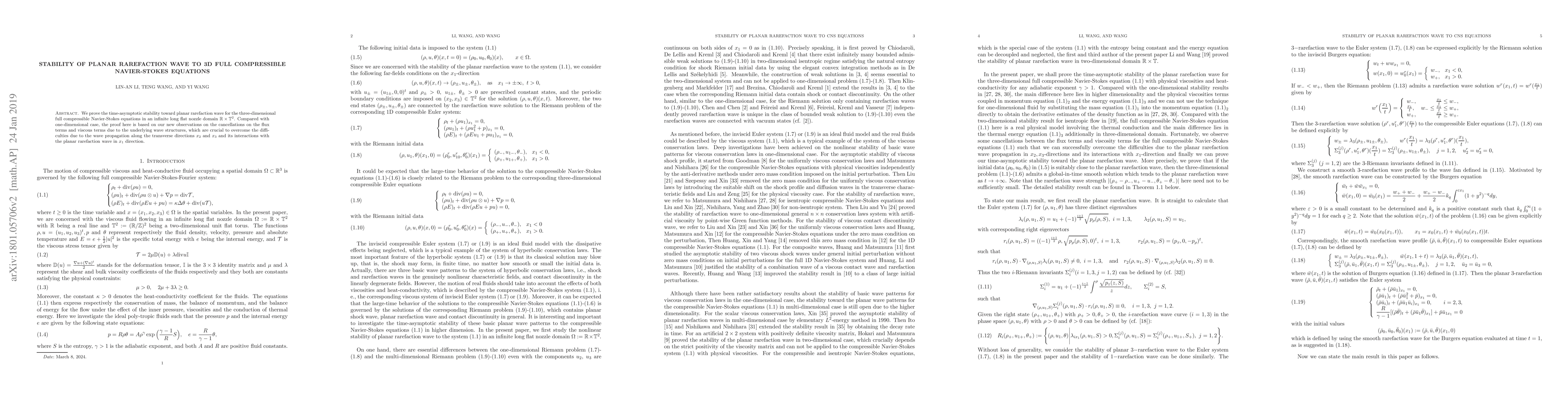 This paper proves the time-asymptotic stability of planar rarefaction waves for 3D compressible Navier-Stokes equations in an infinite flat nozzle domain. The proof leverages new observations on the cancellations in flux and viscous terms due to the wave structures, addressing challenges from wave propagation and interactions in transverse directions.