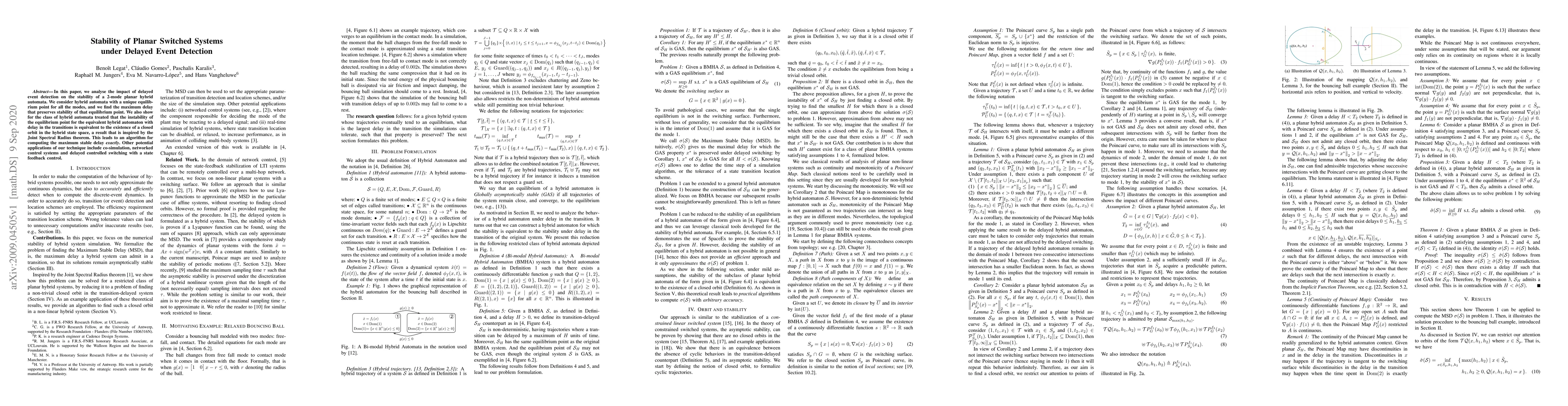 In this paper, we analyse the impact of delayed event detection on the stability of a 2-mode planar hybrid automata. We consider hybrid automata with a unique equilibrium point for all the modes, and we find the maximum delay that preserves stability of that equilibrium point. We also show for the class of hybrid automata treated that the instability of the equilibrium point for the equivalent hybrid automaton with delay in the transitions is equivalent to the existence of a closed orbit in the hybrid state space, a result that is inspired by the Joint Spectral Radius theorem. This leads to an algorithm for computing the maximum stable delay exactly. Other potential applications of our technique include co-simulation, networked control systems and delayed controlled switching with a state feedback control.