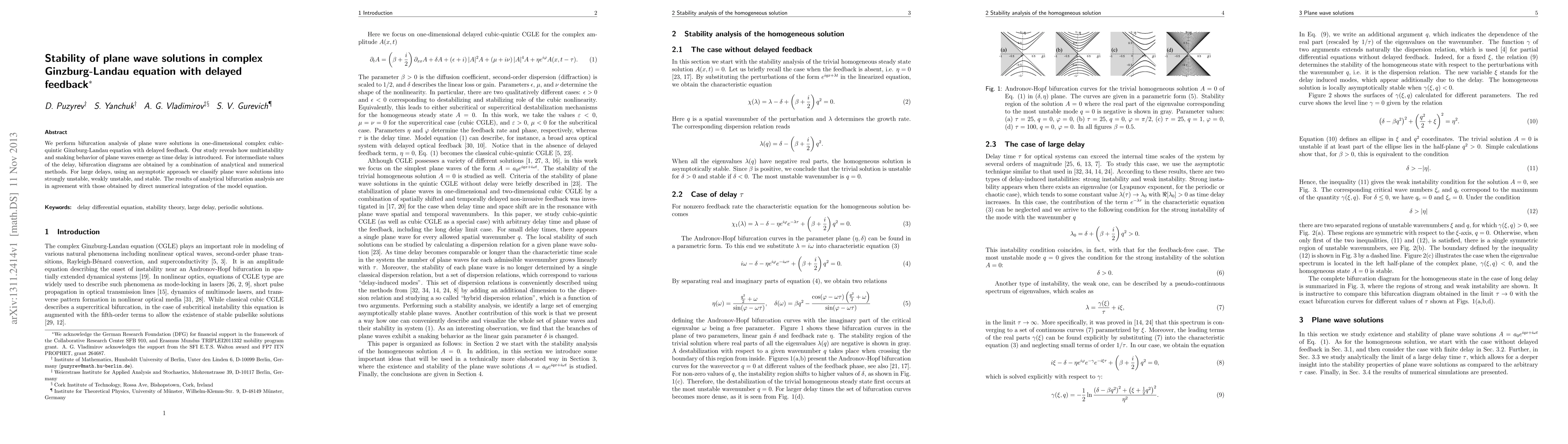 This study explores the behavior of plane wave solutions in a complex Ginzburg-Landau equation with delayed feedback, uncovering multistability and snaking patterns as delay increases. Analytical and numerical methods reveal stable, weakly unstable, and strongly unstable plane wave regimes for varying delays.